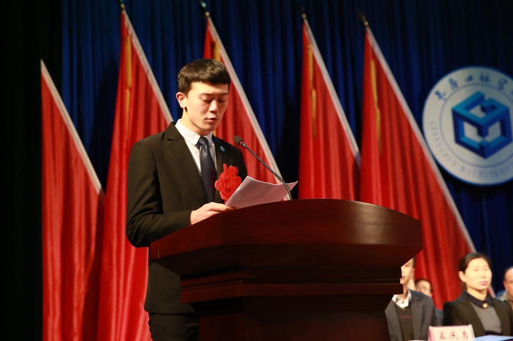 大会在雄壮庄严的国歌声中开幕。校团委书记齐乐宣读了《关于表彰365滚球网址学生工作先进学院和优秀个人的决定》。在本次大会上,共表彰了“十佳大学生”“五项标兵”“优秀学生”等1978名优秀个人和24个“先进集体”、12个“优良学风班”以及 32个“标兵寝室”。与会领导为获奖集体和个人颁发了荣誉证书和奖品。能源动力工程学院热动1442班王今泽、国际教育学院机制1444班陈光耀分别代表获得表彰的先进集体和优秀学生在大会上发言。